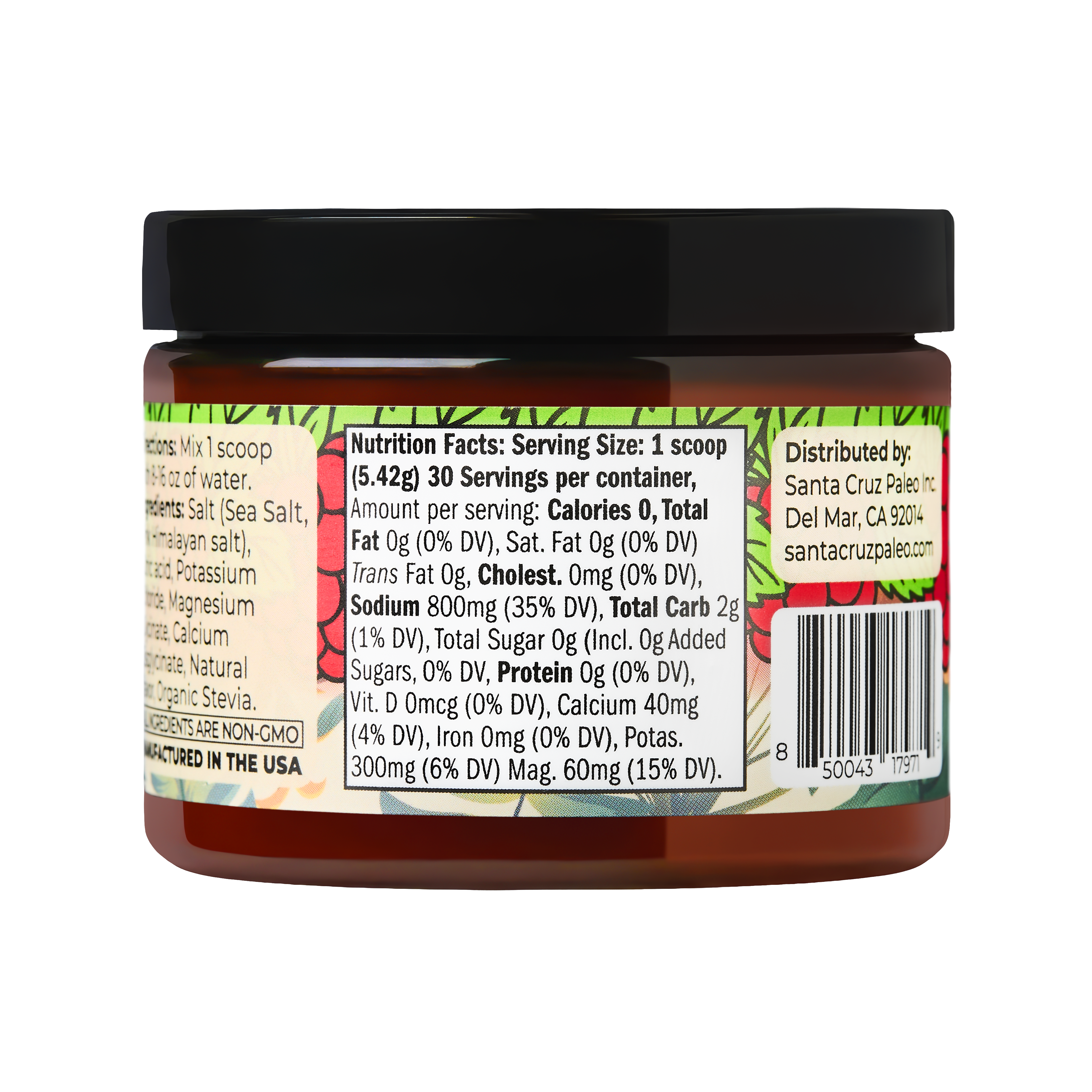 INGREDIENTS: Salt (Sea Salt, Himalayan Pink Salt), Citric Acid, Potassium Chloride, Magnesium Glycinate, Calcium Bisglycinate, Natural Flavor, Organic Stevia.