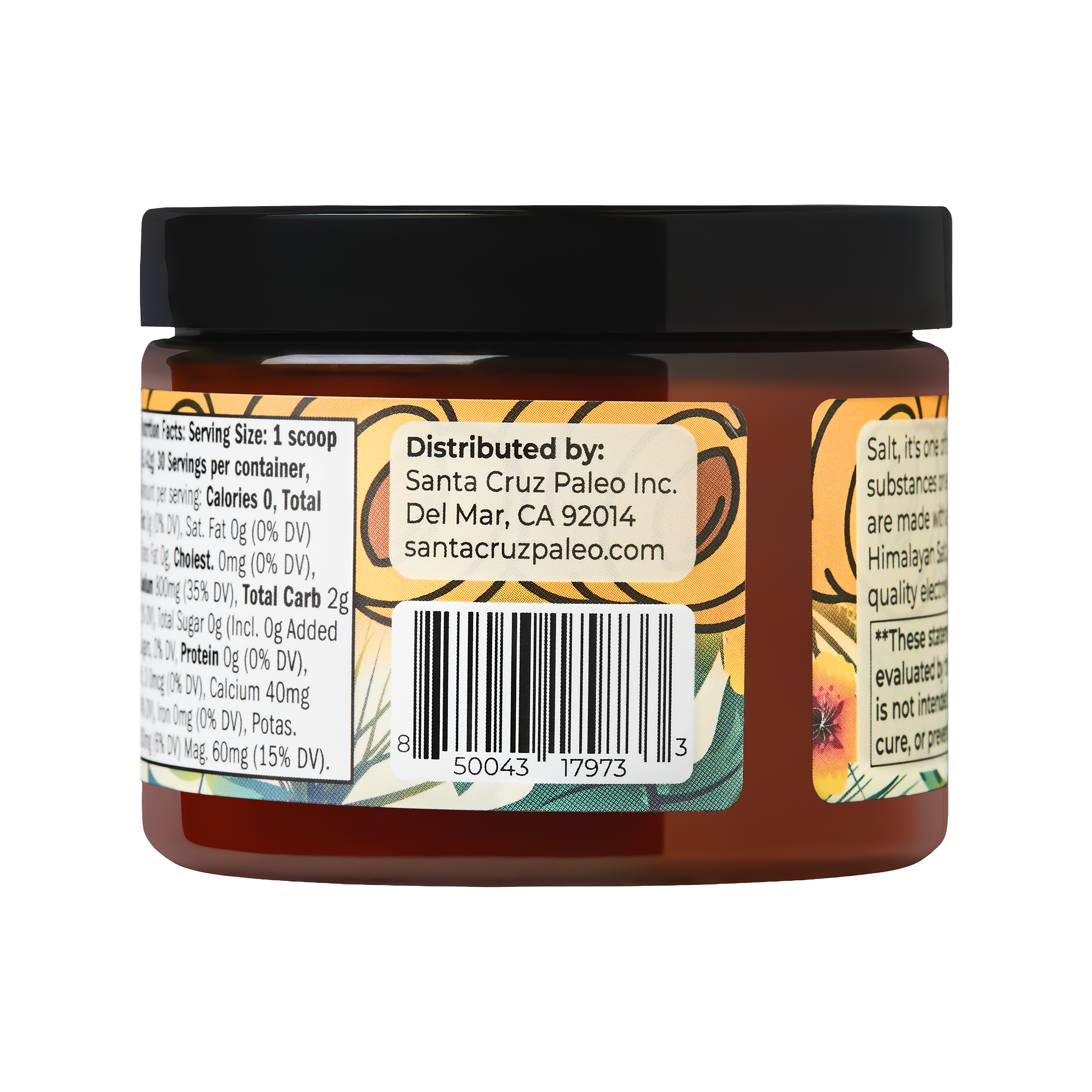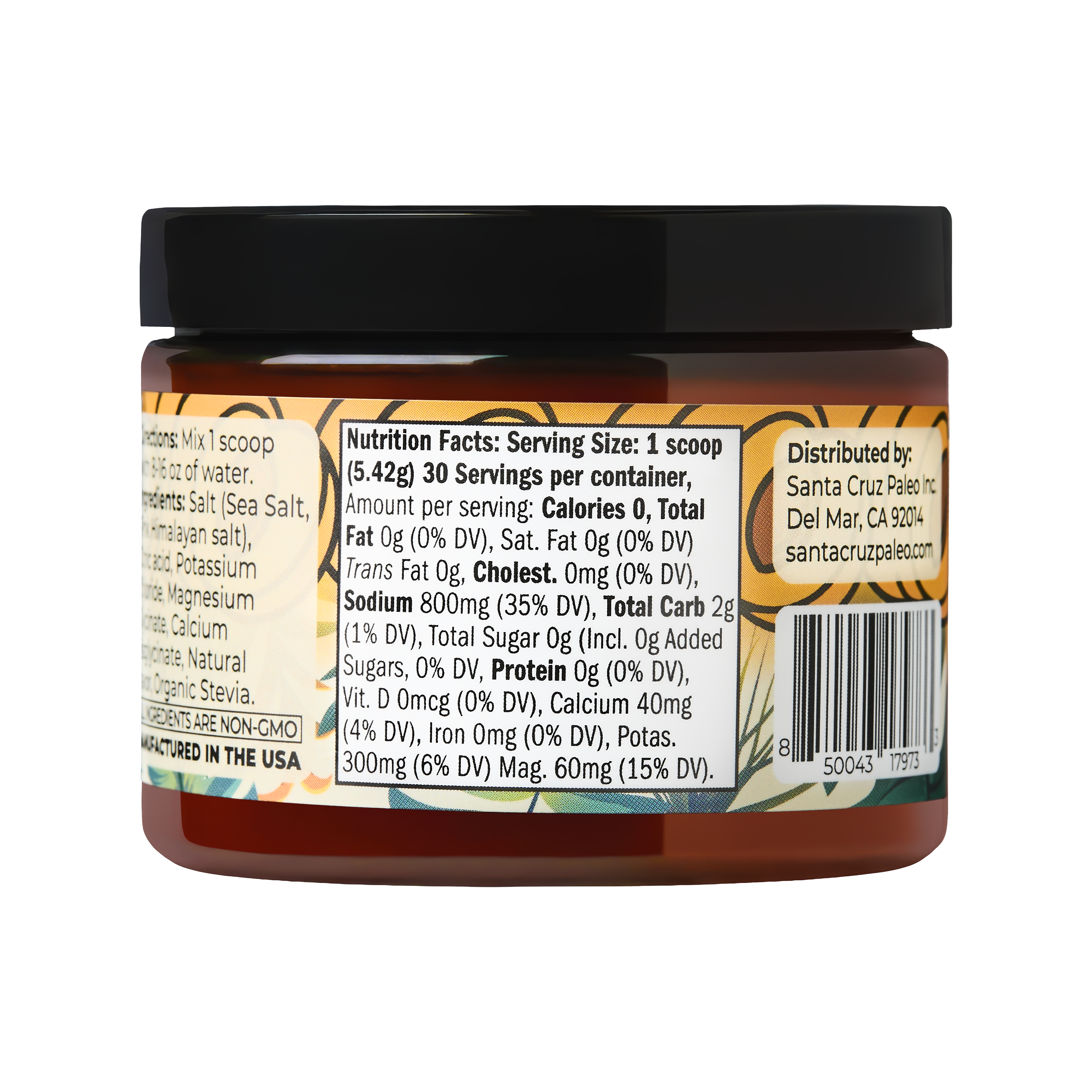 INGREDIENTS: Salt (Sea Salt, Himalayan Pink Salt), Citric Acid, Potassium Chloride, Magnesium Glycinate, Calcium Bisglycinate, Natural Flavor, Organic Stevia.