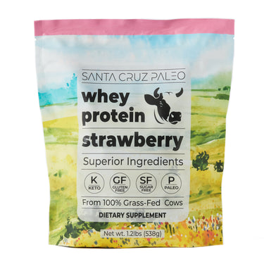 Sourced from Irish grass-fed grass-finished cows and sweetened naturally with monk fruit extract, our Whey Protein is extremely high quality and gut friendly. Our protein contains nothing artificial, reflecting our philosophy of simplicity and purity. Every scoop is a step towards a healthier you, fueling your body with quality protein without any artificial additives. Embrace the natural goodness of our Santa Cruz Paleo Whey Protein and elevate your fitness journey with a product that resonates with your values.