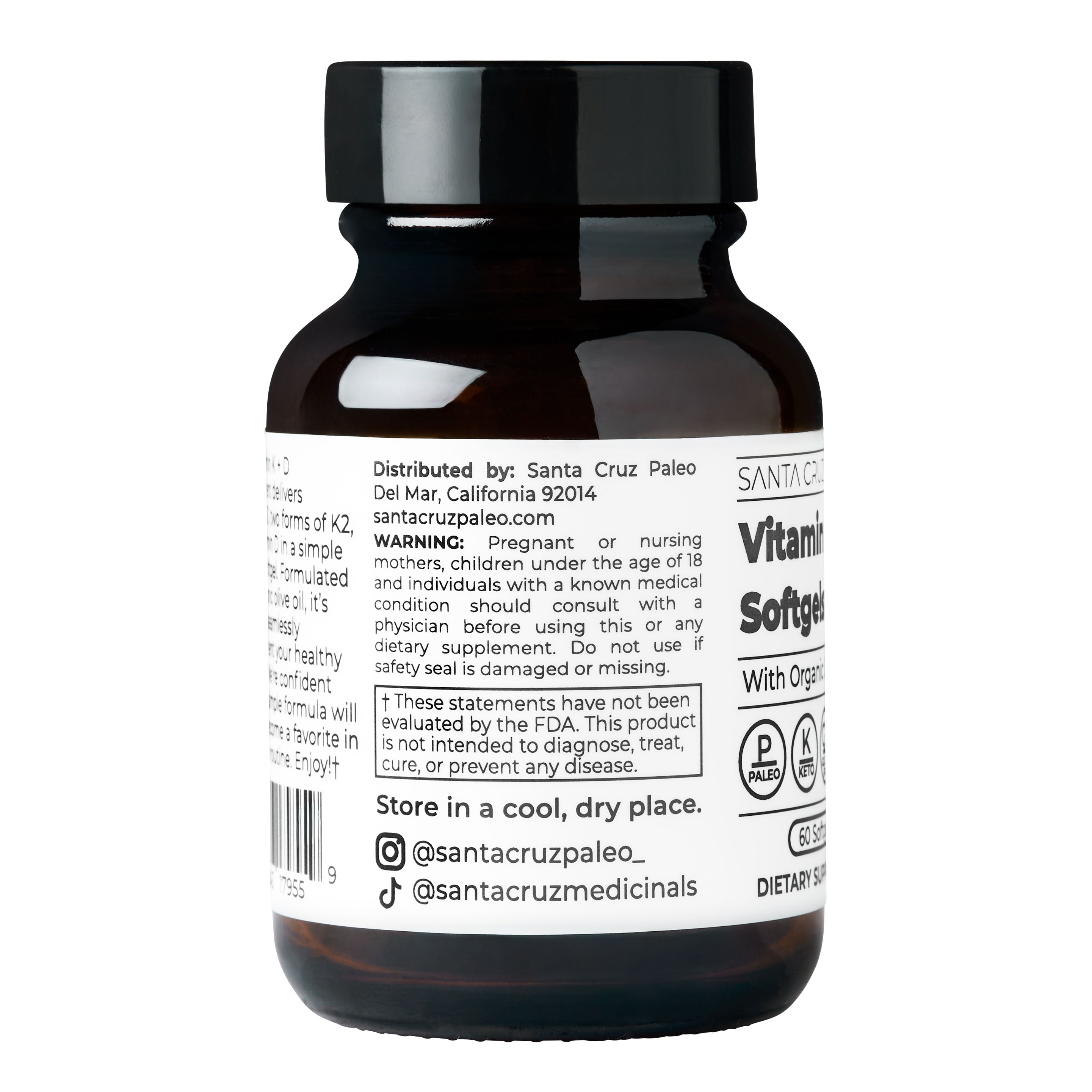 Our Vitamin D + K supplement provides 2000iu of vitamin D3 per softgel. Unlike other brands that use seed oils as carriers, our supplement uses olive oil as the carrier. Olive oil is rich in healthy fats and antioxidants, and it enhances the absorption of vitamin D. Plus, it has a mild flavor and does not cause any unpleasant aftertaste. Our vitamin D plus K supplement is made with natural ingredients and contains no artificial colors, flavors, preservatives, or artificial fillers.